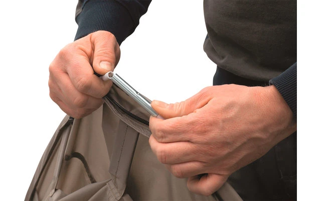 - Tür mit Netzeinsatz kann mit einem Reißverschluss am Zeltboden befestigt werden und ermöglicht so eine perfekte Abdichtung